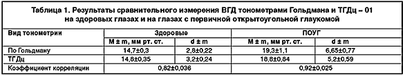 При анализе табл. 1 можно отметить почти полное совпадение среднеарифметических значений М ± m и в контрольной группе здоровых лиц, и в группе больных глаукомой. Коэффициент корреляции (r = 0,92 при тонометрии на глазах с ПОУГ, r = 0,82 на здоровых глазах) близок к единице, что указывает на хорошую совместимость показаний обоих тонометров. Таким образом, транспальпебральная тонометрия, обладая точностью и достоверностью показаний, имеет ряд преимуществ по сравнению с другими методами измерения офтальмотонуса: портативность, удобство в применении, простота методики без использования анестезии и дополнительных офтальмологических приборов, возможность обучения больного или членов его семьи. В связи с этим становится понятной перспектива широкого применения его в офтальмологической практике, особенно при массовых осмотрах, с минимальной затратой времени исследования без потери информативности, включая пациентов с лекарственной аллергией и патологией роговицы, а также для самоконтроля ВГД больным в домашних условиях. Однако следует отметить, что правильность измерения ВГД тонометром ТГДц зависит от точности соблюдения методики тонометрии, подробно описанной в инструкции к прибору. Появившийся еще один новый прибор для измерения офтальмотонуса – индикатор внутриглазного давления ИГД – 02 “ПРА” по принципу работы, способу измерения и конструктивному устройству идентичен тонометру ТГДц–01 “ПРА”, но калиброван по тонометру Маклакова (цифровое значение тонометрического давления при нагрузке 10 г). Эта версия транспальпебрального тонометра может быть более удобна в практике офтальмологов России и СНГ. Поделитесь этой записью или добавьте в закладки |