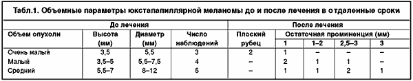 Лазерное лечение внутриглазной меланомы П ервые попытки использовать интенсивное световое излучение, фокусируемое на внутриглазную меланому с целью ее разрушения, связано с именем G. Meyer–Schwickerath (1952, 1980). Однако, как показали 30–летние наблюдения автора [21], а затем и других исследователей [9, 12], рассчитывать на полную регрессию опухоли при воздействии полихроматическим светом можно лишь в случае сильной ее пигментации и небольшой степени выстояния (до 2 мм). Начало применению лазеров (на рубине, а затем на неодиме) в лечении меланом хороидеи положили офтальмологи из Украинского института глазных болезней им. Филатова (Терентьева Л.С., Линник Л.А. и др., 1969). Оказалось возможным более тонко дозировать коагуляцию тканей по площади, но проникающая способность излучения практически не возросла [6, 11, 12]. В последующем лечебное применение лазеров при внутриглазной меланоме развивалось в трех направлениях. Фотодинамическая фоторадиационная лазерная терапия В поисках метода не только более глубокого проникновения в ткани света, но и усиления его избирательного повреждающего действия на опухолевые клетки внимание исследователей (Dougherty T. et al., 1978) привлекла фотодинамическая терапия [15]. Принцип ее заключается в предварительном (обычно за 24 часа) введении в кровяное русло того или иного красителя в расчете на его накопление в опухолевой ткани. Тогда этот краситель вызовет свечение опухолевых клеток и повысит тем самым их чувствительность к лазерным засветам. Ассортимент фотосенсибилизаторов пока невелик. Из числа порфириновых соединений в клинической практике чаще других использовался гематопорфирин. В последнее время в США чаще применяют фотофрин. Естественно, для успешной фотодинамической терапии важно также, чтобы для облучения был выбран лазер, спектральная характеристика которого возможно полнее отвечала бы максимуму спектральной чувствительности мишени. Пока обычно это не очень удается. В частности, к красно–желтому гематопорфирину дополнительным по окраске и максимуму поглощения был бы сине–зеленый лазер. Однако излучения таких длин волн очень слабо проникают через среды и ткани глаза. Обратившись к традиционному подходу, J. Favilla et al. (1991) при предварительной сенсибилизации увеальной меланомы гематопорфирином добились полной регрессии опухоли при облучении лазером на красителях с длиной волны 620–630 нм только в 6 случаях из 19. Суммарная лечебная доза составляла в среднем около 1000 Дж/см2. Примечательно, что чем светлее была опухоль, тем выше была вероятность успеха [16]. Видимо, сильная пигментация экранирует глубокие отделы от проникновения фотонов. J. Davidorf et al. (I9S2) после 10–летнего применения метода при внутриглазных меланомах решили, что его возможности ограничиваются лишь теми случаями, когда небольшая по размеру опухоль локализуется в ткани радужки. Авторы доводили дозу до 1,72х10 6 Дж/см2 [14]. Механизм полезного действия фотодинамической терапии в настоящее время объясняют следующим образом. Молекулы опухолевых клеток под влиянием фотосенсибилизации приходят в неравновесное (возбужденное) состояние и при их облучении лазерным светом нарушается кислородный обмен: обычный кислород превращается в синглетный, который и губит клетку. В самое последнее время с целью повышения эффективности метода в лечении злокачестве