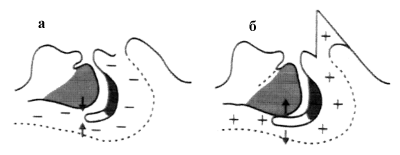 Рис. 1. Схематическое изображение сил, действующих на стенки глотки во время вдоха у лежащего пациента.