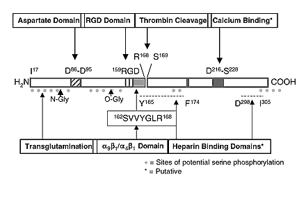 Как показали проведенные за последние несколько лет исследования, происходящее in vivo расщепление OP тромбином имеет существенное физиологическое значение (O'Regan A, Berman J. 2000; Denhardt D., et al., 2001; Yokasaki Y, Sheppard D., 2000; Asou Y., et al., 2001).