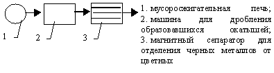 Схема 2 предусматривает переработку материалов, которые имеют сопутствующи материалы (пластмассы, резину, картон и т.д.) Переработка твердых металических отходов, содержащих сопутствующие материалы