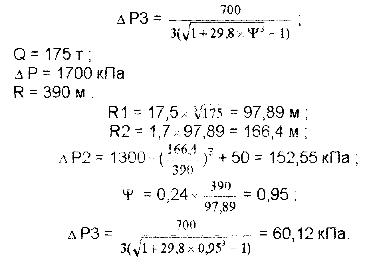 где R - расстояние от центра взрыва до рассматриваемой точки (элемента объекта), м. Для расчета избыточного давления в зоне действия воздушной ударной волны предварительно определяется относительная величина: