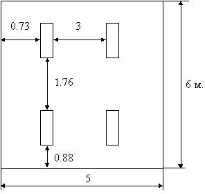 Рис. 1.1 Схема расположения светильников. 1.3 Воздействие шума на программиста. Защита от шума. В помещениях с низким уровнем общего шума, каким является лаборатория где работает программист, источниками шумовых помех могут стать вентиляционные установки, кондиционеры или периферийное оборудование для ЭВМ (плоттеры, принтеры и др). Длительное воздействие этих шумов отрицательно сказываются на эмоциональном состоянии персонала. Согласно ГОСТ 12.1.003-76 ССБТ эквивалентный уровень звука не должен превышать 50 дБА. Для того, чтобы добиться этого уровня шума рекомендуется применять звукопоглощающее покрытие стен. В качестве мер по снижению шума можно предложить следующее:
