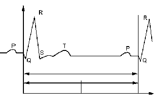 При кратковременном воздействии (0,1-0,5с) ток порядка 100мА не вызывает фибрилляции сердца. Если увеличить длительность воздействия до 1с, то этот же ток может привести к смертельному исходу. С уменьшением длительности воздействия значение допустимых для человека токов существенно увеличивается. При изменении времени воздействия от 1 до 0,1с допустимый ток возрастает в 16 раз. Кроме того, сокращение длительности воздействия электрического тока уменьшает опасность поражения человека исходя из некоторых особенностей работы сердца. Продолжительность одного периода кардиоцикла (рис. 2.1.) составляет 0075-0,85с.