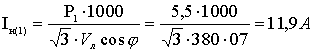 Определение номинальных токов потребителей Для установки №№ 1-6