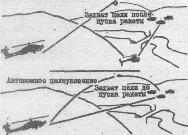 Боевые возможности ракеты "Хеллфайр". Ракета "Хеллфайр" способна захватывать цели до пуска, после пуска, после пуска с небольшим набором ракетой высоты и после пуска со значительным набором ракетой высоты. Эти возможности и способы пуска ракет указаны на схеме 3.