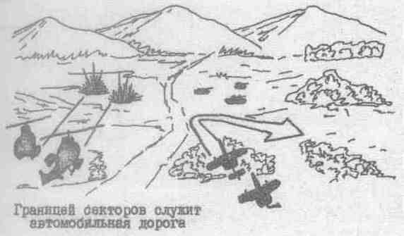 Схема 7. Порядок нанесения ударов с разделением по секторам. Последовательное нанесение ударов , является вторым вариантом применения смешанной самолетно-вертолетной ударной группы. Каждому элементу группы для атаки цели выделяется определенное время, например пять минут. В течение этого времени данный элемент действует самостоятельно. Затем цель атакуется вторым элементом группы. Вертолеты огневой поддержки во время перерывов между атаками цели меняют боевые позиции. Пример последовательного нанесения ударов приводится на схеме 8.