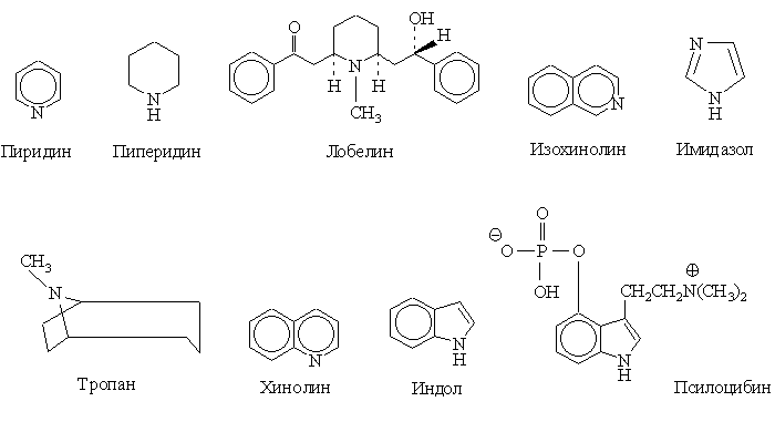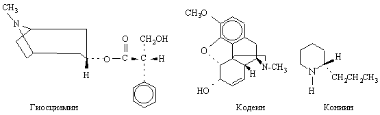 Алкалоиды аконита, аспидоспермы, хинного дерева, спорыньи, эфедры, ибоги, ипекакуаны, люпина, опийного мака, раувольфии, крестовника, картофеля, стрихноса (рвотного ореха) и иохимбе – это классы алкалоидов, члены которых объединены по источнику выделения. Классификация по химическому составу основана на особенностях молекулярного азотно-углеродного скелета, который является одинаковым для членов данной группы алкалоидов. Алкалоиды, составляющие основные структурные классы - пиридиновые (никотин), пиперидиновые (лобелин), тропановые (гиосциамин), хинолиновые (хинин), изохинолиновые (морфин), индольные (псилоцибин, активное начало мексиканских галлюциногенных грибов, резерпин и стрихнин), имидазольные (пилокарпин), стероидные (томатидин из томатов), дитерпеноидные (аконитин), пуриновые (кофеин из чая и кофе, теофиллин из чая и теобромин из чая и какао):