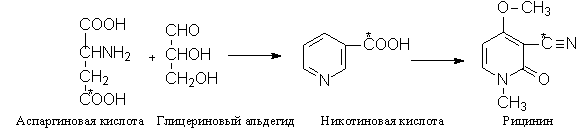 Из никотиновой кислоты у клещевины образуется рицинин, а сама никотиновая