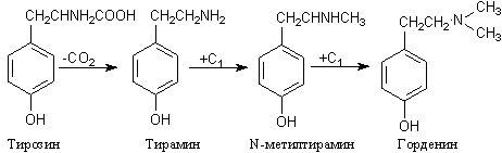 Тирозин служит источником горденина; из фенилаланина образуется эфедрин.