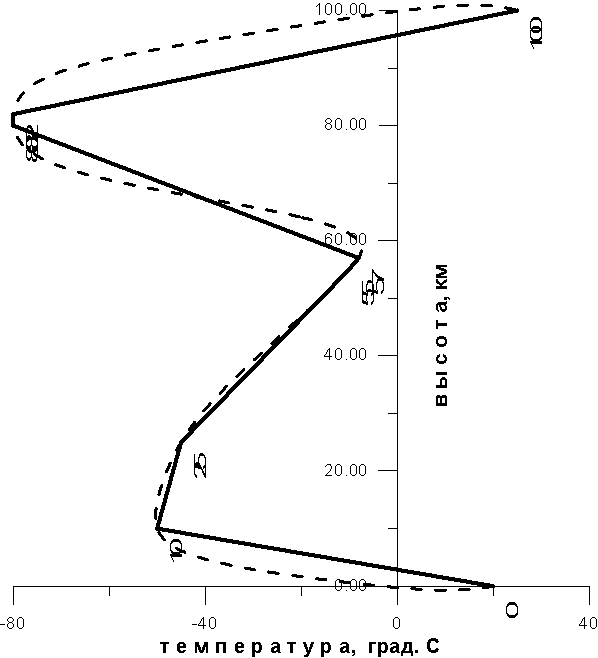 Рис.1. Изменение температуры с высотой в атмосфере Неоднородности теплового режима тропосферы обусловливаются также разным атмосферным давлением в ее частях. Это связывается с рельефом, расположением континентов и акваторий, вращением Земли. Воздушные массы при охлаждении сжимаются, уплотняются и опускаются вниз, при этом давление увеличивается, а при нагревании - расширяются, облегчаются и поднимаются вверх, при этом давление уменьшается. Воздух перемещается из мест с повышенным давлением в места с пониженным давлением, в связи с чем возникают ветры. В тропосфере происходит круговорот воздушных масс, вызванный постоянной разницей между температурами отдельных тепловых поясов земной поверхности. В экваториальной полосе на протяжении всего года бывает высокая температура, здесь находится пояс низкого давления. В этой полосе нет постоянных ветров; существующее затишье лишь иногда нарушается бурями и ураганами. Нагретый воздух на экваторе поднимается в верхние слои атмосферы и направляется к полюсам. Под влиянием вращения Земли вокруг оси масса воздуха, движущаяся на высоте до 2-3 км, постепенно отклоняется от северных азимутов к востоку. Достигнув 30-35 о с.ш. (30-35 о ю.ш.), т.е. районов субтропиков, основные массы воздуха окончательно поворачивают на восток и начинают вращаться вокруг Земли с запада на восток. Новые, непрерывно притекающие потоки воздуха обусловливают в субтропиках скопление масс воздуха и образуют пояса высокого давления. Воздушные массы, которые сконцентрировались вверху, опускаются и расходятся от поясов высокого давления по поверхности Земли. Эти массы формируют постоянные ветры от поясов высокого давления в сторону экватора, которые называют пассатами. Им противопоставляются антипассаты - массы воздуха, создающие ветры в верхних слоях тропосферы от экватора к субтропикам. Под влиянием вращения Земли пассаты отклоняются к западу и в северном полушарии дуют на юго-запад, а в южном полушарии - на северо-запад. От субтропических поясов высокого давления часть воздушных масс не доходит до полюсов, т.к. сильно отклоняется. Поэтому в средних широтах (60-65 о ) преобладают юго-западные ветры в северном полушарии и северо-западные - в южном полушарии. Ветры дуют также с полюсов, где расположены пояса высокого давления. Кроме постоянно дующих ветров, существуют и периодически дующие ветры. К ним принадлежат циклоны и антициклоны, муссоны и др. Для циклонов и антициклонов характерно вращательное движение воздушных масс: у первых - против часовой стрелки с областью пониженного давления в центре; у вторых - по часовой стрелке с областью повышенного давления в центре. Циклоны перемещаются иногда с огромной скоростью (например, в тропических поясах до 200-250 км/ч) и причиняют огромный ущерб на поверхности суши или океанов. Циклоны и антициклоны образуются от соприкосновения встречных воздушных масс. Муссоны возникают по побережьям океанов от неравномерного нагревания суши и водных масс. Летом они дуют с океана, зимой - с суши. Пограничный слой между тропо- и стратосферой называется тропопаузой. В этом сравнительно тонком слое толщиной 2-4 км наблюдаются изотермические условия. В стратосфере температура воздуха постепенно повышается с высотой, градиент составляет 1-2 мК/м, т.е. у верхней границы слоя температура дости