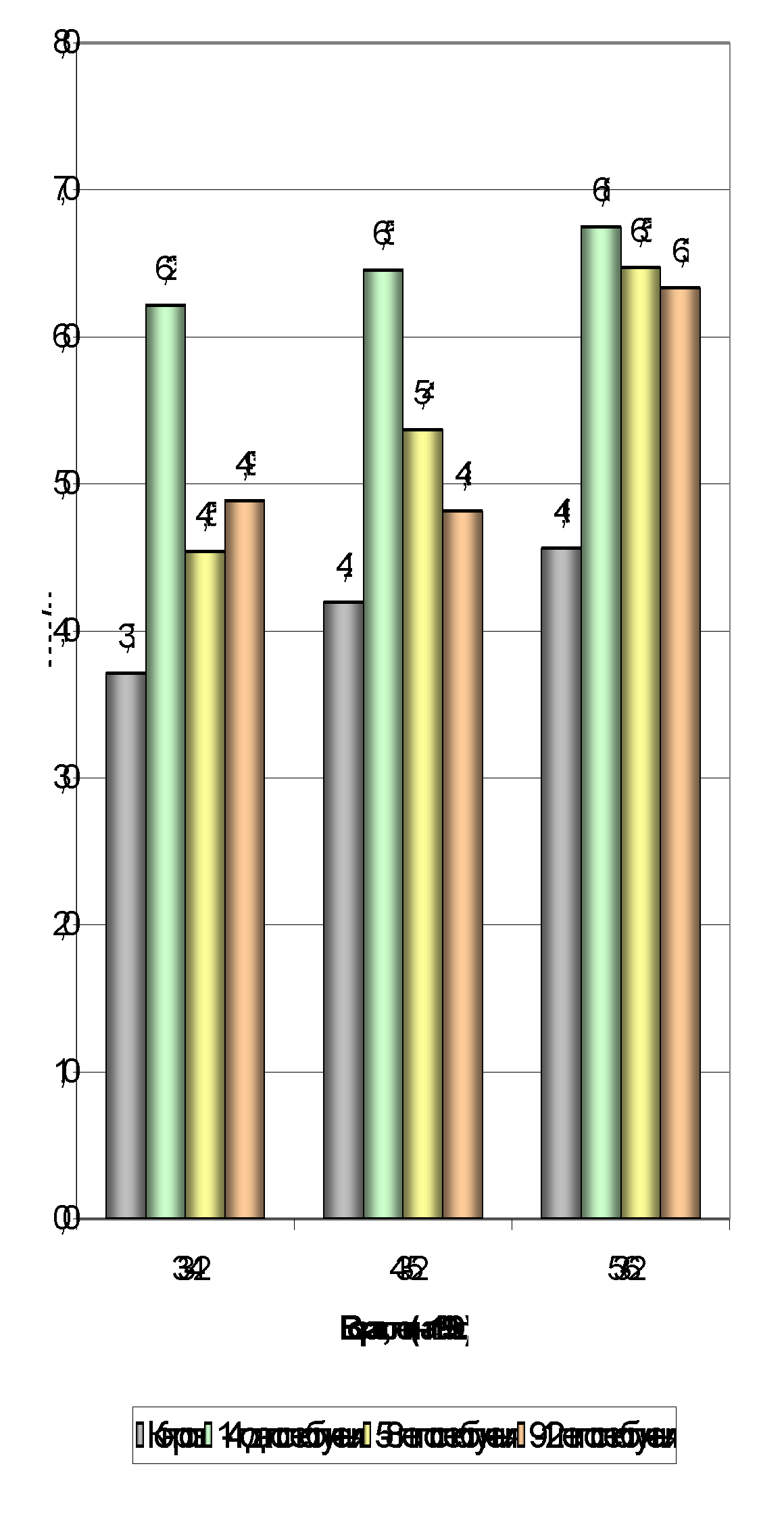 Можно предположить, что постэкспозиционное уменьшение числа эритроцитов и содержания гемоглобина в первой возрастной группе связано с низкой устойчивостью молодо Рис. 3.2. Постэкспозиционное изменение концентрации гемоглобина в зависимости от возраста. го организма (возраст значительной доли обследованных 1-й группы составил на момент облучения 20-22 года) к повреждающим факторам окружающей среды, в том числе и к радиации. Скорость оседания эритроцитов повышается во всех возрастных группах (табл. 3.1., рис. 3.3.), что обусловлено, вероятно, уменьшением количества эритроцитов и изменениями физико-химических свойств плазмы крови в постэкспозиционном периоде [2,8]. Наибольший прирост наблюдается на 1-4-м году постэкспозиции, достигая 6,8± 1,24 мм/ч в старшей возрастной группе (53-62 года). На последующих этапах СОЭ несколько снижается, причем, заметна обратная зависимость эффективности процесса восстановления от возраста. Можно предположить, что восстановительные процессы в старших возрастных группах отчасти компенсируют встречное повышение СОЭ, обусловленное чисто возрастным фактором.