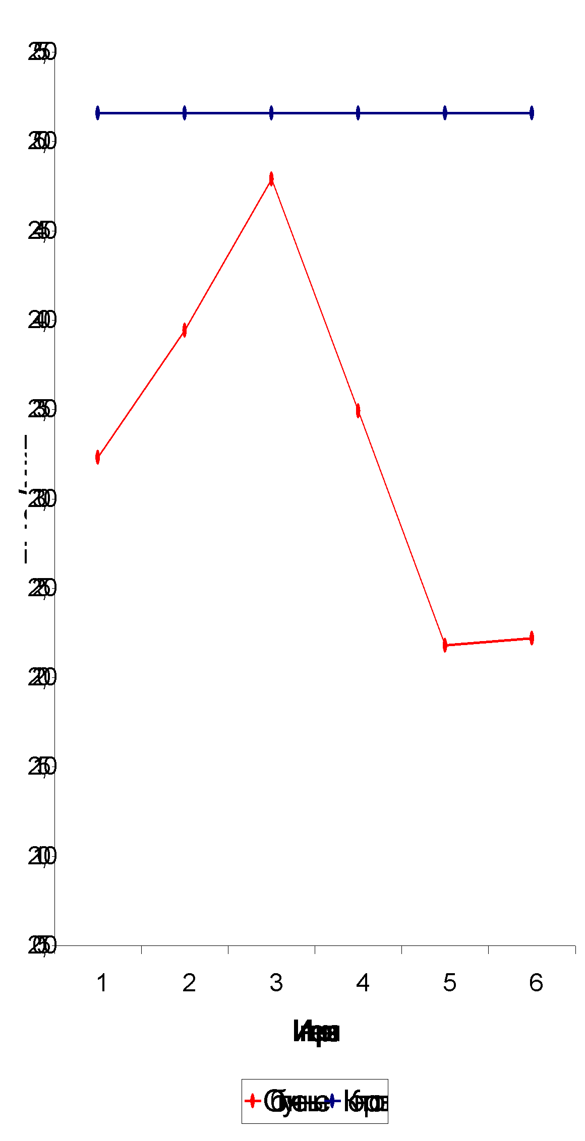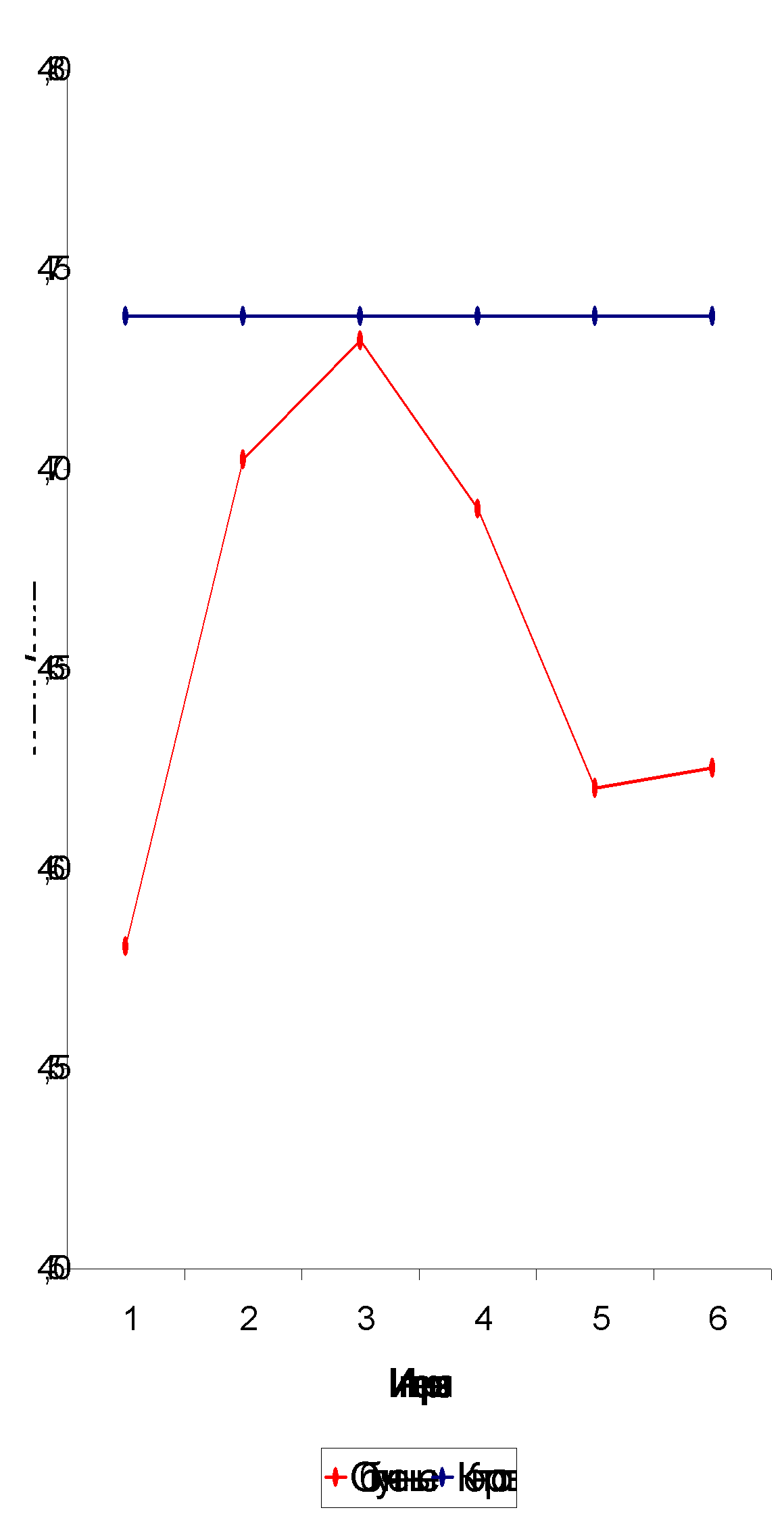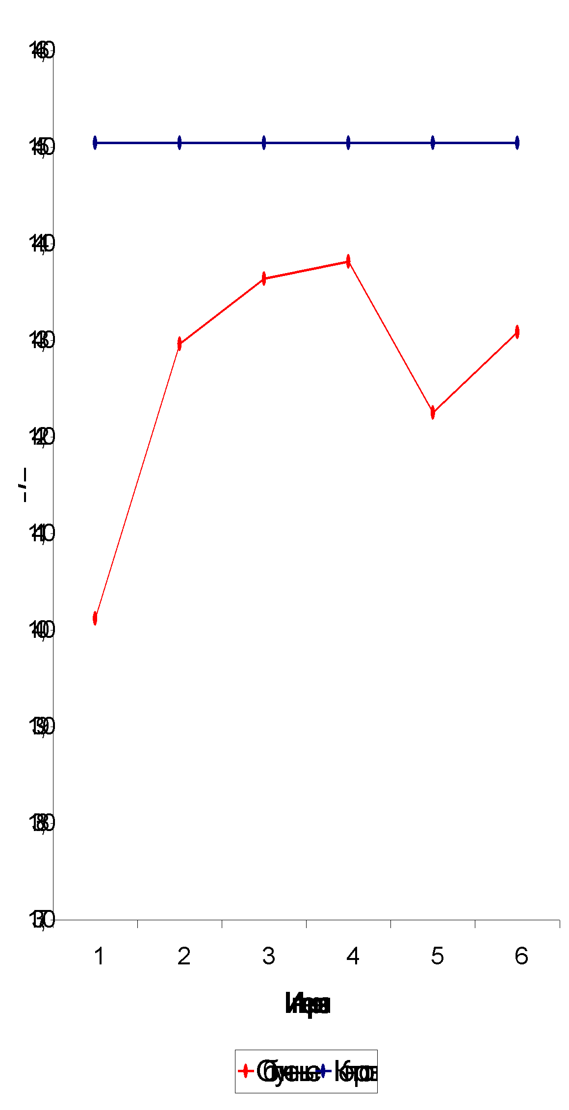 Рис. 3.5. Динамика гемоглобина. Скорость оседания эритроцитов на 1-2-м году после облучения существенно превышало уровень нормы (табл. 3.2., рис. 3.6.), в последующие периоды величина этого показателя снижалась и к 7-8-му году достоверно не отличалась от контрольного значения. На 11-12-м году СОЭ несколько увеличивается, что может служить индикатором преждевременного старения организма как одного из последствий облучения. Количество лейкоцитов на 1-2-м году (7,00±0,277 тыс./мкл) статистически значимо превышает нормальный уровень (6,00±0,067 тыс./мкл), на 3-4-м году оно уменьшается до 5,87±0,178 тыс./мкл, оставаясь сравнительно стабильным в последующие периоды. Количество тромбоцитов на 1-2-м году постэкспозиционного периода достоверно ниже нормальной величины (табл. 3.2., рис. 3.7.), что согласуется с данными других исследователей [14,19,27]. В дальнейшем уровень показателя повышается и на 3-6-м году после облучения практически не отличается от контрольного. Такое повышение носит, скорее всего, компенсаторный характер. На 7-м году после облучения содержание тромбоцитов снова снижается, что может свидетельствовать об истощении механизма компенсации и наступле