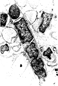 В 1993–1994 гг. в сорок четвертом и сорок пятом рейсах научно-исследовательского судна “Профессор Водяницкий” были подняты из анаэробных зон коралловидные постройки. Снаружи они оказались покрытыми толстым (до 2–3 см) студнеобразным слоем бактериальных обрастаний (матов) розовато-коричневого цвета. В бактериальных матах наряду с анаэробным окислением метана были зарегистрированы процессы бактериальной сульфатредукции и метаногенеза. Данные микробиологических, спектральных, энзиматических и электронно-микроскопических исследований подтвердили доминирование в составе бактериальных матов анаэробных микроорганизмов. Есть основания предполагать, что основу бактериального мата составляют метанобразующие архебактерии рода Methanotrix. Каковы же возможные механизмы анаэробного окисления метана? Предположение, что сульфаты могут служить конечными акцепторами электронов в процессе окисления метана, не подтвердилось. Возможное объяснение было подсказано работами Зендера и Брока, показавшими, что чистые культуры метаногенов могут часть метана анаэробно окислять до СО 2 в реакции, обратной образованию метана: CH 4 +2H 2 O®CO 2 +4H 2 . Принципиально использование воды в качестве конечного акцептора электронов при окислении метана термодинамически возможно при крайне низких концентрациях Н 2 и СО 2 или при высоких концентрациях метана. Поскольку до сих пор бактериальные маты обнаруживались исключительно на арагонитовых постройках в зонах выхода газовых струй, высокие концентрации метана в среде могут быть обязательным условием развития матов.