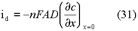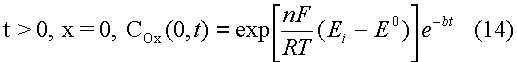 Для описания токов, связанных с электродными реакциями, необходимо решить уравнения (1), (2). Впервые эту задачу решили Шевчик и Рендлс. Рендлс применил для решения графический метод. Аналитический метод, избранный Шевчиком, заключается в применении преобразования Лапласа. После обратного преобразования получается выражение для потока вещества Ox от поверхности электрода.