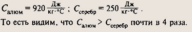 Если алюминиевую и серебряную ложки одинаковой массы и температуры опустить в кипяток, то алюминиевая ложка получит от воды почти в 4 раза большее количество теплоты благодаря тому, что