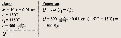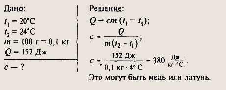 Если стальную деталь и медную заклепку равной массы нагреть до одинаковой температуры и опустить в воду, то (поскольку удельная теплоемкость стали в 1,32 раза больше удельной теплоемкости меди) от стальной детали вода получит большее количество теплоты.