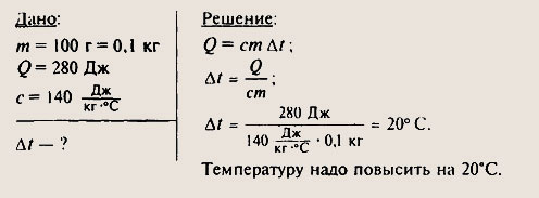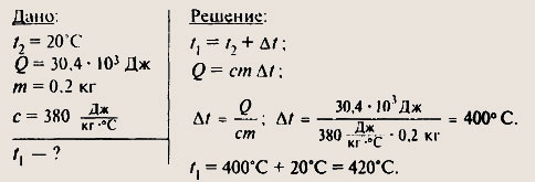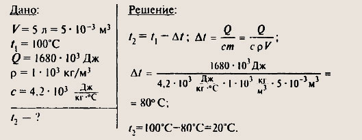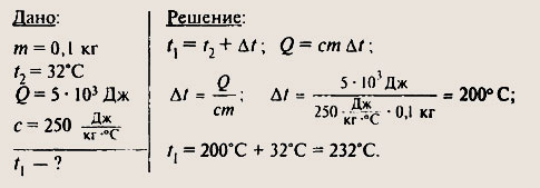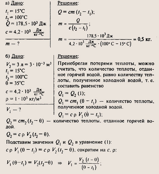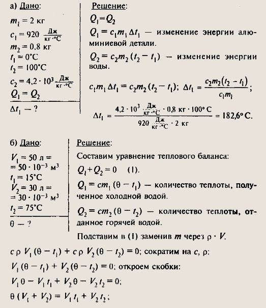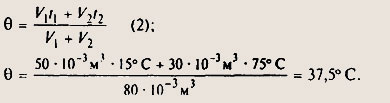 Темпертура смеси 37,5 °С. в) Задача решается аналогично предыдущей. При решении можно воспользоваться и выводом, и самой формулой (2).