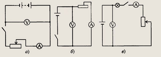 При движении ползунка реостата вправо сопротивление цепи увеличивается, показания амперметра уменьшаются, так как сила тока уменьшается; показания вольтметра увеличиваются. При движении ползунка влево — все наоборот.