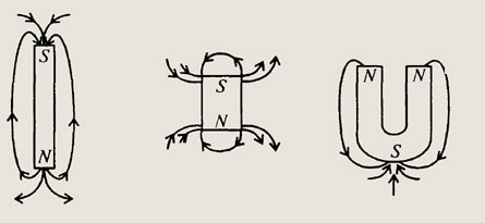 В поле подковообразного магнита гвоздь намагничивается и своими концами притягивается к разноименным полюсам магнита.
