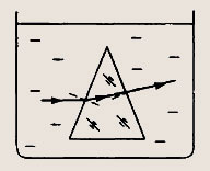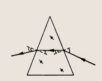 Луч света отклоняется к основанию треугольной стеклянной призмы.
