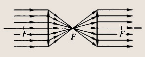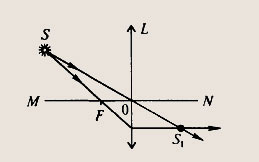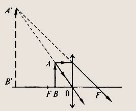 Если предмет поместить между линзой и фокусом, то собирающая линза даст в воздухе расходящийся пучок света.
