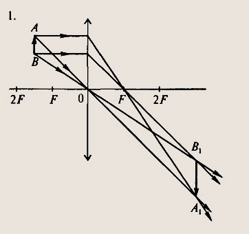 1. Изображение а) перевернутое; б) увеличенное; в) действительное.