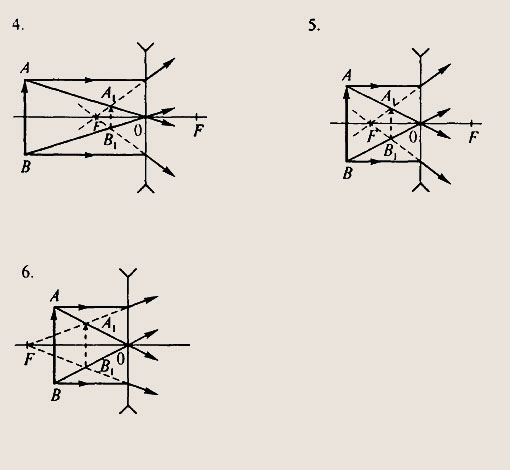 4. Изображение а) прямое; б) уменьшенное; в) мнимое. 5. Изображение а) прямое; б) уменьшенное; в) мнимое. 6. Изображение а) прямое; б) уменьшенное; в) мнимое.