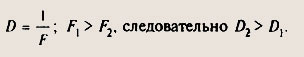 При рассмотрении близких предметов хрусталик более выпуклый, фокус /''меньший, а оптическая сила больше. D= 1/F.
