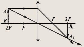 Лампа находилась относительно линзы между F и 2F. Изображение было перевернутым, действительным и увеличенным.