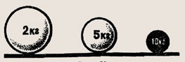 Задание 334. Какой из шаров имеет самый маленький вес; самый большой (рис. 68)? Одинакова ли плотность веществ, из которых изготовлены шары? Рис.68