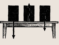 Задание 364. Изобразите графически силы, действующие на доску АВ (рис. 80). Обозначьте буквами их точки приложения.