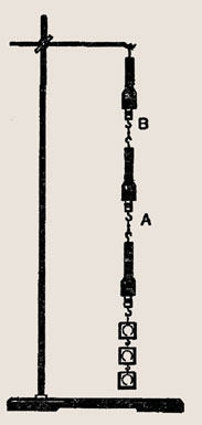 Задание 372. К трем динамометрам, соединенным так, как показано на рисунке 85, подвешены грузы по 1 Н каждый. Определите цену деления шкалы каждого динамометра. Чему равна сила натяжения нитей в точках А и В? (Весом динамометров пренебречь.)