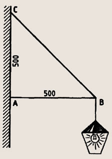 Задание 398. Фонарь массой 5 кг укреплен на подвесе (рис. 92). Определите силы, действующие на брусок AS и проволоку СВ.
