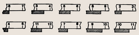 Задание 19. На рисунке 3 показаны части брусков и линеек. Левые концы брусков совпадают с нулевыми отметками линеек, что на рисунке не показано, а правые концы относительно числовых отметок шкалы расположены так, как показано на рисунке. Определите на глаз длину каждого бруска, если цена деления линеек 1 см.