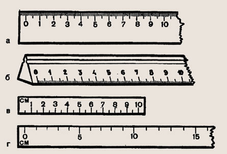 Задание 20. С какой точностью вы можете измерить длины небольших предметов линейками, изображенными на рисунке 4, а, б. в. г?