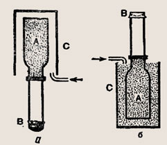 Задание 482. Пористый сосуд А (рис. 118, а) соединен с трубкой, свободный конец которой затянут резиновой пленкой В. Если сосуд С заполнить водородом, то пленка прогнется вниз (см, рис.). Если сосуд С заполнить углекислым газом и расположить так, как показано на рисунке 118, б, то пленка В прогнется внутрь трубки. Чем это можно объяснить?