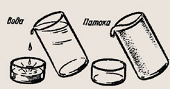 Задание 483. Стакан, доверху наполненный водой, и стакан, наполненный патокой, наклонили одновременно (рис. 119). Что можно сказать о подвижности молекул этих жидкостей относительно друг друга; о взаимодействии молекул и частиц, составляющих эти жидкости? Рис.119