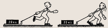 Задание 663. Одинаковую ли работу совершают мальчики (рис. 196) при равномерном перемещении саней на одном и том же пути?