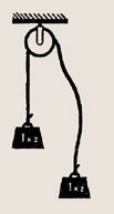 Задание 776. Две гири А и В массами по 1 кг соединены легкой нерастяжимой нитью, перекинутой через блок (рис. 229). Найдите ускорение, с которым движутся гири; силу натяжения нити. (Трением можно пренебречь.)