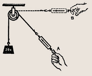 Задание 762. На рисунке 219 динамометр А показывает силу 20 Н. Что должен показать динамометр В?