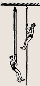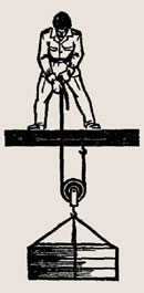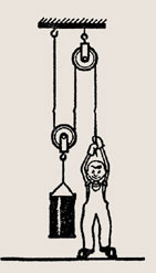 Задание 763. Как легче подниматься вверх: лезть по веревке или поднимать себя при помощи блока (рис. 220)?