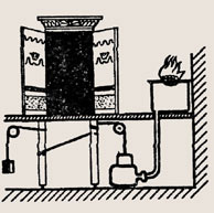 Задание 767. На рисунке 224 показано одно из чудес древних египетских жрецов. Как только на жертвеннике загорался огонь, двери храма раскрывались. Объясните, на чем основано это чудо. (В жертвеннике воздух. Примите во внимание, что жертвенник при помощи трубы соединен с кожаным мешком.)