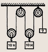 Задание 772. Груз какого веса надо подвесить, чтобы система блоков (рис. 227) находилась в равновесии? (Трением и весом блоков пренебречь.)