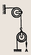 Задание 768. Какой наибольший груз может приподнять мальчик, масса которого равна 42 кг, пользуясь одним подвижным и одним неподвижным блоком (рис. 225)? Рис.225