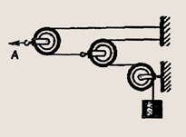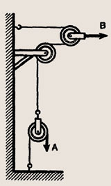 Задание 783. Какую силу надо приложить к тросуЛ (рис. 233), чтобы трос В был натянут с силой 1 кН?