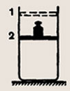 Задание 47. Под действием груза поршень в цилиндре опустился (рис. 15). Когда же груз удалили, то поршень занял прежнее положение 1. Как при этом изменилось отношение объема воздуха, находящегося под поршнем, к сумме объемов его молекул?
