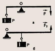 Задание 786. Используя стальной лом в качестве рычага, на одну и ту же высоту поднимают груз Р двумя способами (рис. 235, а и б). Плечи, на которые действует груз, и трение в точках опоры О одинаковы. Одинаковым ли будет КПД рычагов? Ответ объясните. Рис. 235
