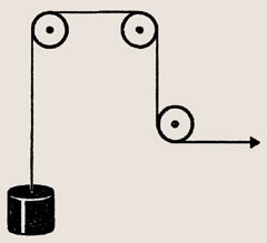 Задание 794. У каждого неподвижного блока (рис. 238) КПД равен 0,9. Определите КПД всей установки.