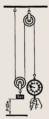Задание 796. С помощью блоков равномерно поднимают груз (рис. 239). Используя данные рисунка, вычислите КПД установки.